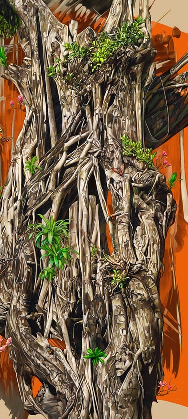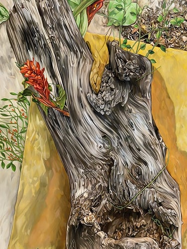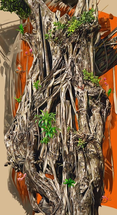 As imagens, quase fotográficas, são como um registro fictício de uma natureza que se regenera e se renova; resignificando o seco, a morte, como uma representação da esperança e renovação, com a vida encontrando sua forma de resistir, ocupando seus espaços e se impondo. A finitude humana, a inevitabilidade da morte, são desafiadas por uma eterna evolução em um flerte de esperança na vida eterna.